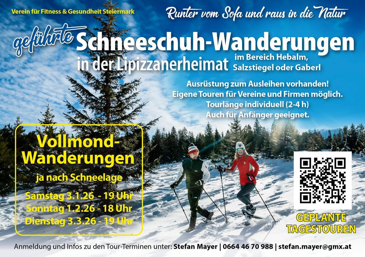 Hier werden geführte Schneeschuhwanderungen im Bereich Hebalm, Gaberl oder Salzstiegl angeboten.